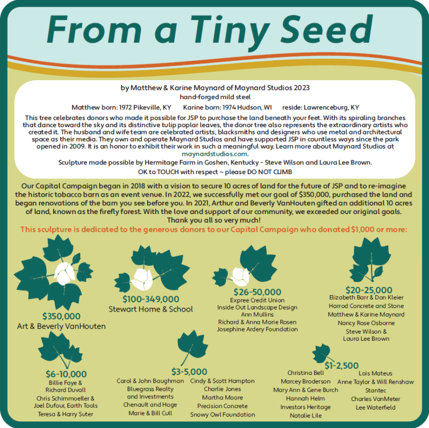 Examples of signage design, production, and photography for a non-profit arts organization and park.
