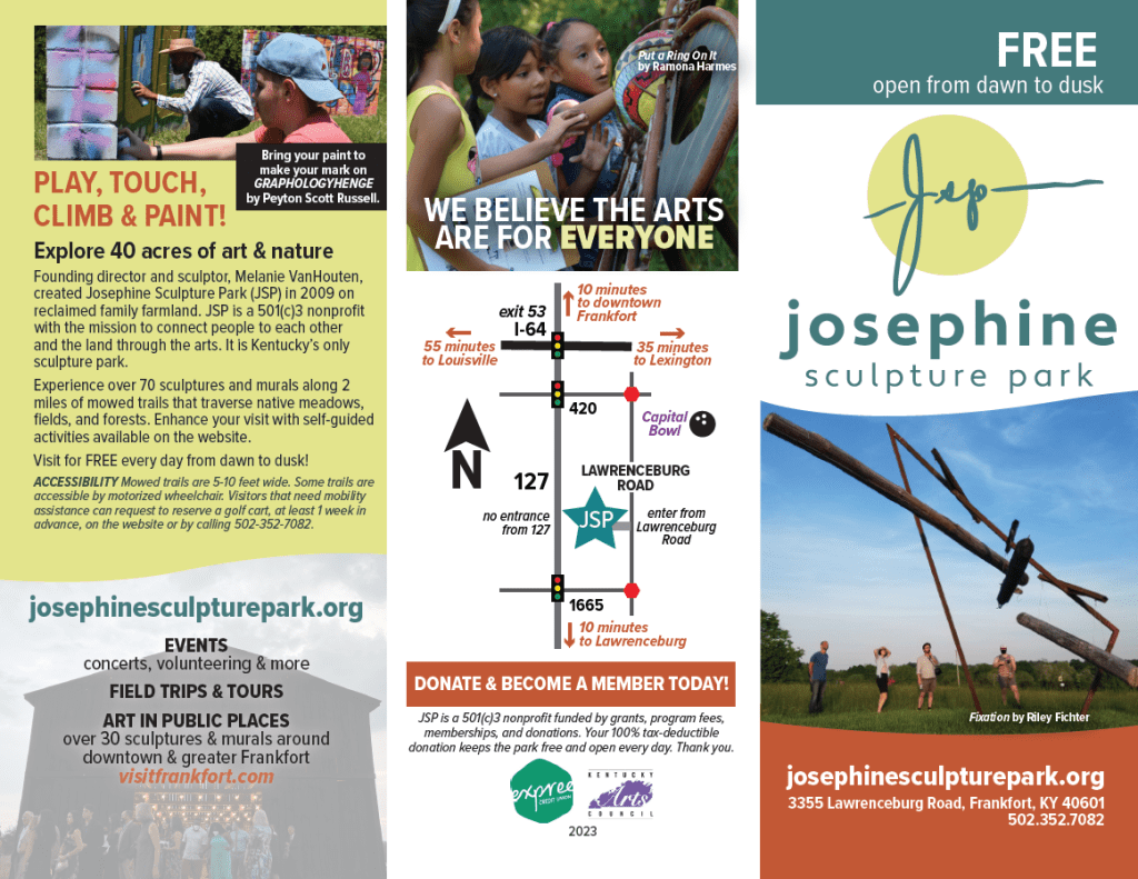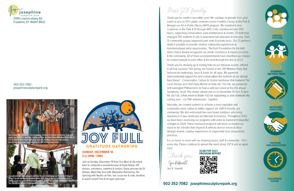These link to original content creation in writing, design, photography, and website content management. There are also examples of design for print/publication, mailing, advertising, and signage.